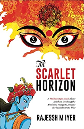 Well, now let me talk about this slightly voluminous novel ‘Scarlet Horizon’ by Rajessh M Iyer. It is interesting because the author tries the best of his imagination on how Krishna tries to invoke the feminine energy to prevent the Mahabharata War.