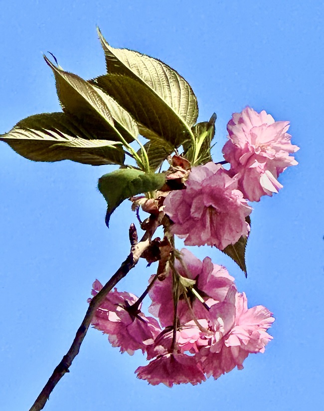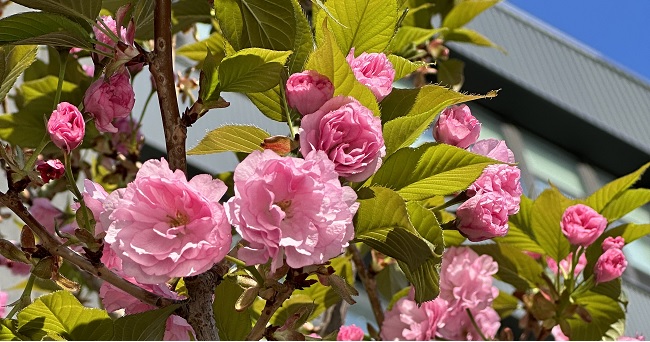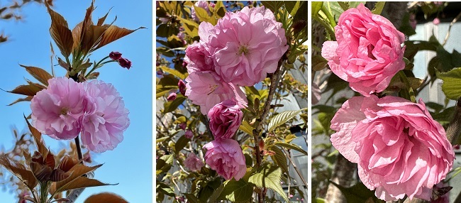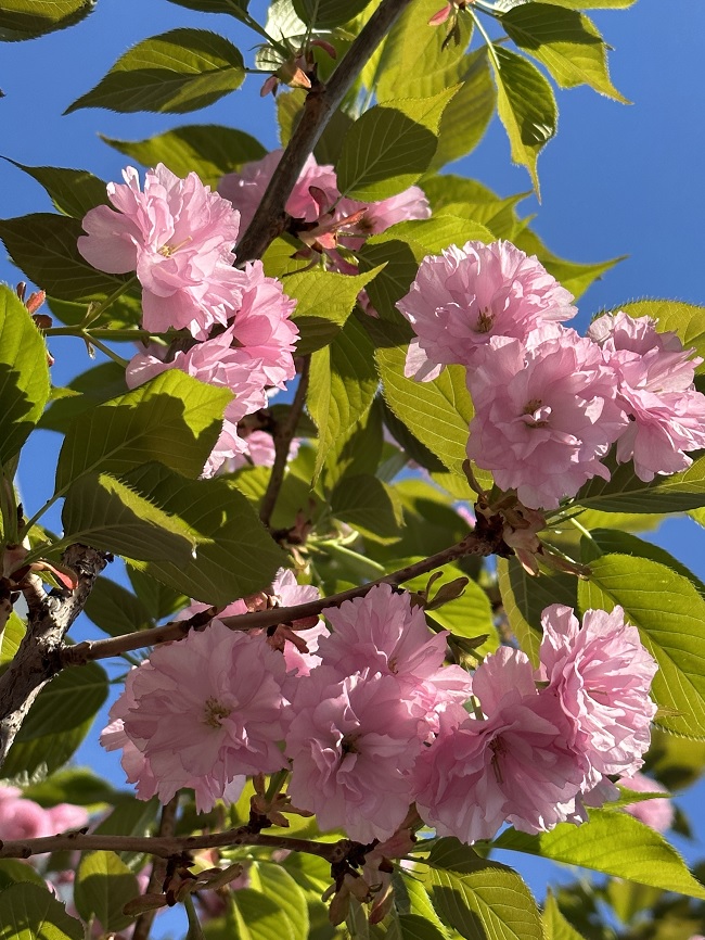 The Prunus Kanzan is the most popular cultivar of all the double-flowering cherries with showy pink blossoms in the spring. The trees have a vase-shaped form and typically grow 25 to 30 feet tall and 25-30 feet wide with ascending branches and spreading round-crown. Each flower, about 2.5 inches in diameter has 20 to 30 petals and blooms in pendant clusters of two to five flowers during April.