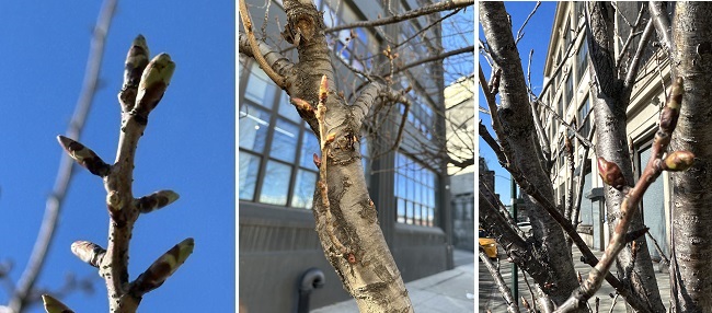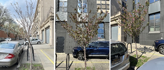 A couple of years ago the city planted trees of various varieties on the sidewalk curb of our office building. Two of them were Cherry Cultivars. One of these is on the same sidewalk where I have been parking my car for the last several weeks.