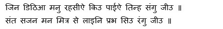 Sant sajjan mun mitr sae laain prabh siau ru(n)g jeeau.”