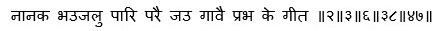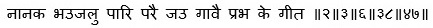 “Nanak bhaujal paar parai jau gaavai prabh ke geet. 2. 3. 6. 38. 47.” – (SGGS, Pg. No. 536)