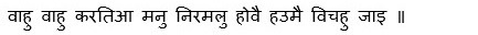 Translation: Chanting Waaho! Waaho! (In praises) the mind is purified, and egotism (which is filth) departs from within.