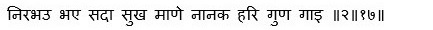Translation: Nanak has become fearless, and enjoys eternal bliss, singing the Glorious Praises of the Lord. ||2||17||