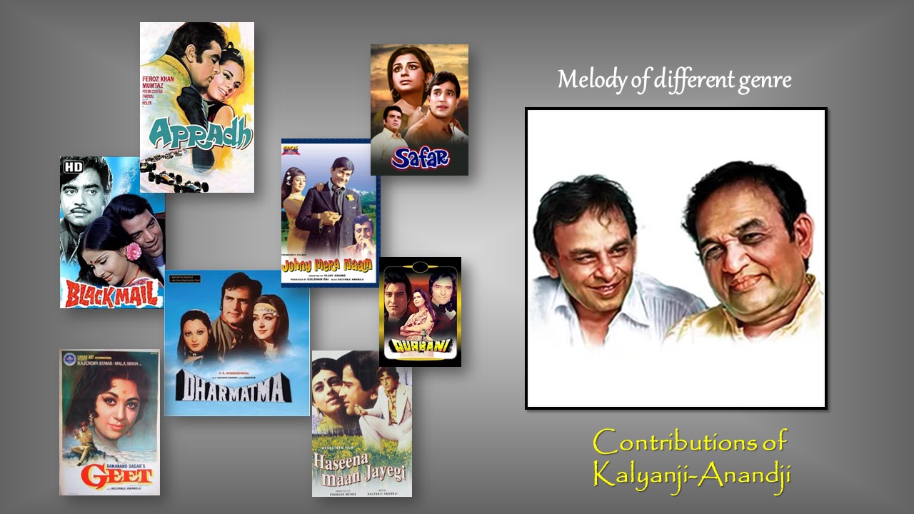 Kalyan Virji Shah and Anand Virji Shah became Kalyanji- Anandji, later with their catchy numbers which turned popular. They too have a style of their own which is reflected in their songs.