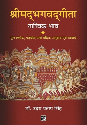 More recently, Dr. Udai Pratap Singh, an accomplished Indian educator and researcher has authored a scholarly treaty on the same subject, namely “Srimad Bhagavad Gita Tattvik Bhav”. Dr. Singh was born on 16 September 1951 in the village Dihiya (Gayatri Nagar), district Jaunpur (UP), India, he had his higher education leading to a Ph.D. in Physics from the Banaras Hindu University, Varanasi and was a research associate for three years (1986-89) in Boston College, Massachusetts, USA. He served as a lecturer and principal for a long time in a renowned college of Jaunpur (UP) and has published several research papers in the renowned foreign and Indian journals. Besides, he has a natural inclination for practicing Yoga and spirituality for long time with a deep interest in study and learnings of Hindu scriptures and allied texts, which inspired him to have a sustained involvement with commitment and dedication to produce the book under reference. Published by the Lok Bharti Prakashan, Prayag Raj, India, the first edition (2023) of the book written in Hindi language contains a total of 495 pages.