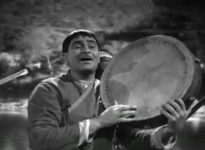 RK Films’ next film, Ab Dilli dur nahin (1957), directed by Amar Kumar, with music by Dattaram, who was part of the Shankar Jaikishen team for many years, was a low budget film. Based on a story by Rajinder Singh Bedi, it is about a young boy who travels to Delhi to meet the Prime Minister, to seek justice for his father who has been sentenced to death wrongly. Two songs from the film, Yeh chaman hamara apna hai, sung by Asha Bhonsle and Geeta Dutt, and Chun Chun karti aayi chidiya, sung by Mohammed Rafi, became popular. The latter is one of the best children’s songs in Hindi films.