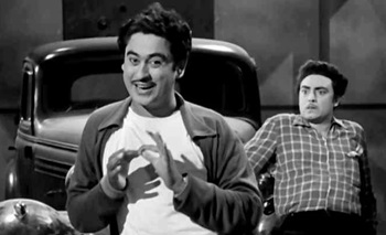 SD Burman and his son Rahul gave several hit tunes. Babu Samjho Ishaare, with the brothers riding the jalopy, named Champion in the film, was a runaway hit. Haal Kaisa Hai Janaab Ka was Kishore’s first song to top the Binaca Geetmala in 1959 and his solo Ek ladki bheegi bhaagi si was ranked high. Hum thay woh thay and Ek ladki bheegi bhaagi si were based on Tennessee Ernie Ford's The Watermelon Song and Merle Travis's Sixteen Tons respectively. When he left college, Kishore Kumar had a balance of five rupees and twelve annas in the college canteen. He used this figure in the song Main sitaron ka taraana, asking the heroine for panch rupayya barah anna.