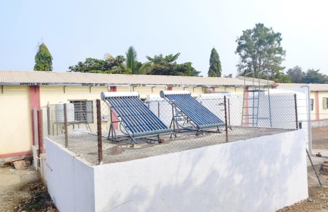 The system collects rainwater from the school roof top and stores in food grade tanks and this water is then cleaned through a solar thermal system (without electricity) to provide clean drinking water for children.