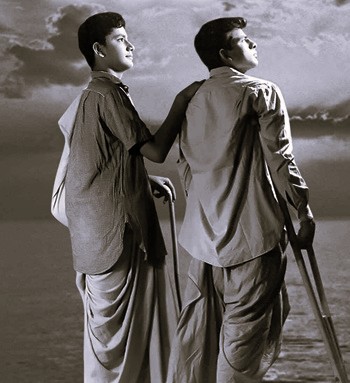 The film is the story of Ramu (Sushil Kumar), who loses his mobility in an accident, his mother to illness, and his education to poverty. Alone on the streets, he meets Mohan (Sudhir Kumar), who is blind and separated from his sister. Together, they sing songs that tug at the heartstrings of people, with Ramu playing his harmonica. RD Burman played the harmonica for Ramu. Beyond the kinship between these plucky physically challenged teenagers and their struggles, Dosti holds up a mirror to the state of things in India a decade and a half after the country gained Independence, as hopes in the new economic order fade in the face of poverty, unemployment, and degrading morals.