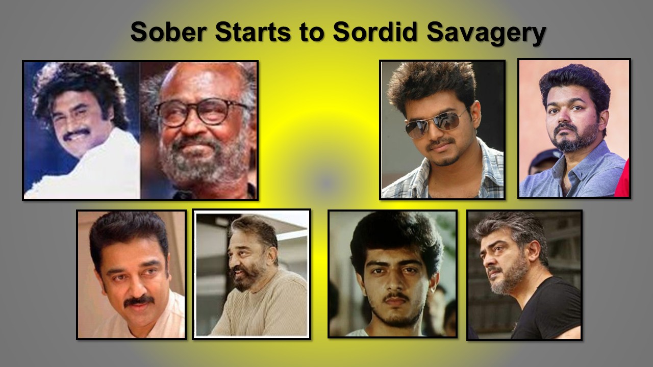 Films are for entertainment, no doubt, but they too have a responsibility and public commitment. The ‘simpleton’ superstar, ‘intellectual’ Kamal Hassan, ‘political aspirant’ Vijay, and ‘real action man’ Ajith couldn’t keep on feeding the masses just with horrible, bloody (really and figuratively) stories and sickening stunts, and violence forever.
