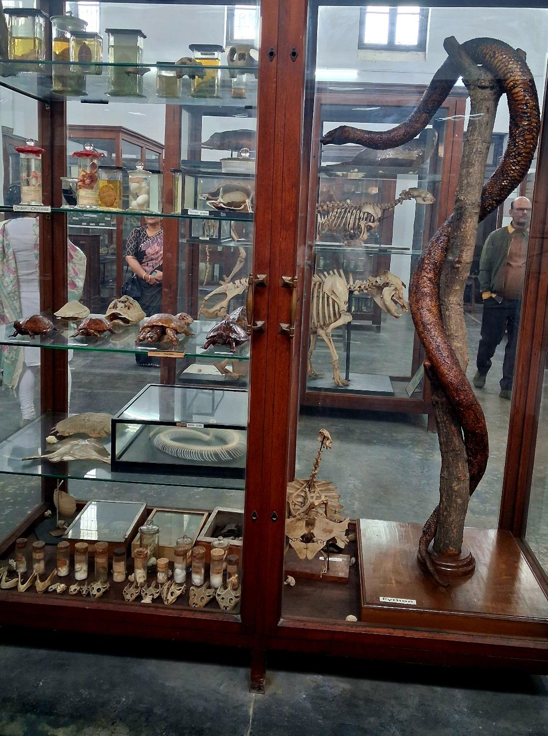 As I wanted to make maximum use of the time available to fulfill my own curiosities and interests in the department, so, I had quietly slipped out for some time to have a round of the departmental building and facilities, some of which included my classroom during the post-graduation course, lecture theater for the B.Sc. class (suffice to accommodate the students of all four sections C1-C4: I was in C1 Section), the Museum, the Library, my own research lab/desk, our fisheries practical lab, and so on. Visiting the museum was particularly a thrilling experience, and I was so happy to learn that it has been reasonably well preserved and maintained all along, and now named after my venerated teacher and research advisor Dr. SC Baugh. I have shared above images of complete skeleton of a few large mammals as also a panoramic view of the preserved animals in the museum. Ever since, the object and use of some of the rooms/halls and other facilities of our time have been re-appropriated for different uses with the changing time and needs.