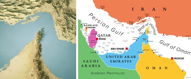 Hence, one ponders over the idea of creating a Hormuz bypass canal in the Peninsular Oman and the UAE to link the Gulf of Oman with the Persian Gulf, totally bypassing the chokepoint of the Strait of Hormuz. We have previous examples of enhancing trade connectivity and achieve significant gains in both time and economic efficiencies by creating manmade canals and waterways. The Suez Canal is a 120.1-mile-long (193.3-km) artificial sea-level waterway in Egypt, connecting the Mediterranean Sea and the Red Sea. The Panama Canal is an artificial waterway approximately 51 miles (82 kilometers) long that connects the Atlantic Ocean (via the Caribbean Sea) and the Pacific Ocean. If one studies the regional maps and geography, there are several competing candidate routes for building a man-made waterway between the Gulf of Oman and Persian Gulf cutting across the land while bypassing the maritime chokepoint of the strait of Hormuz.