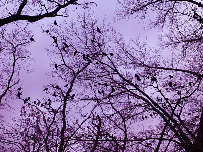 Some birds visible from tree-branches,